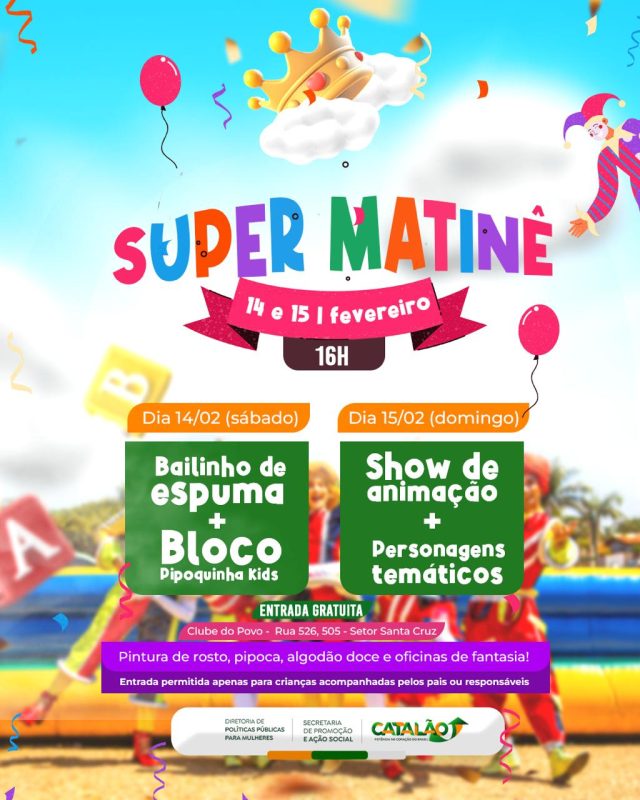 Bailinho de espuma, bloco Pipiquinha Kids, show de animação, personagens temáticos, pintura facial, pipoca, algodão doce e oficinas de fantasia!