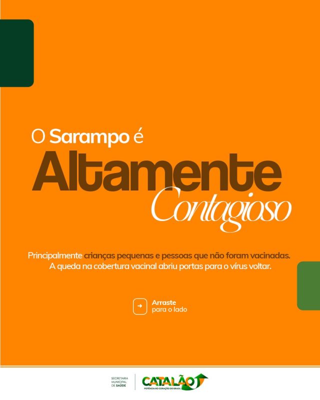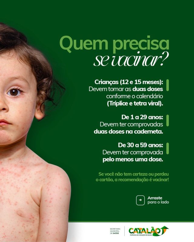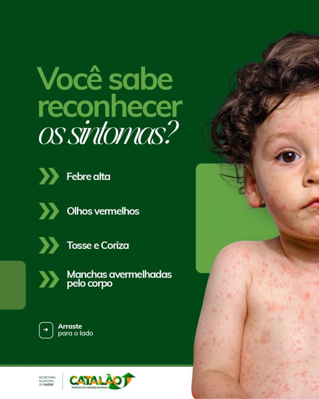 O sarampo é uma doença infecciosa grave que pode evoluir para complicações severas, como pneumonia e encefalite, podendo ser fatal, especialmente em crianças pequenas e adultos não imunizados. Em Catalão, a preocupação da Vigilância em Saúde é com a queda na cobertura vacinal registrada nos últimos anos, o que deixa a população vulnerável à reintrodução do vírus.
